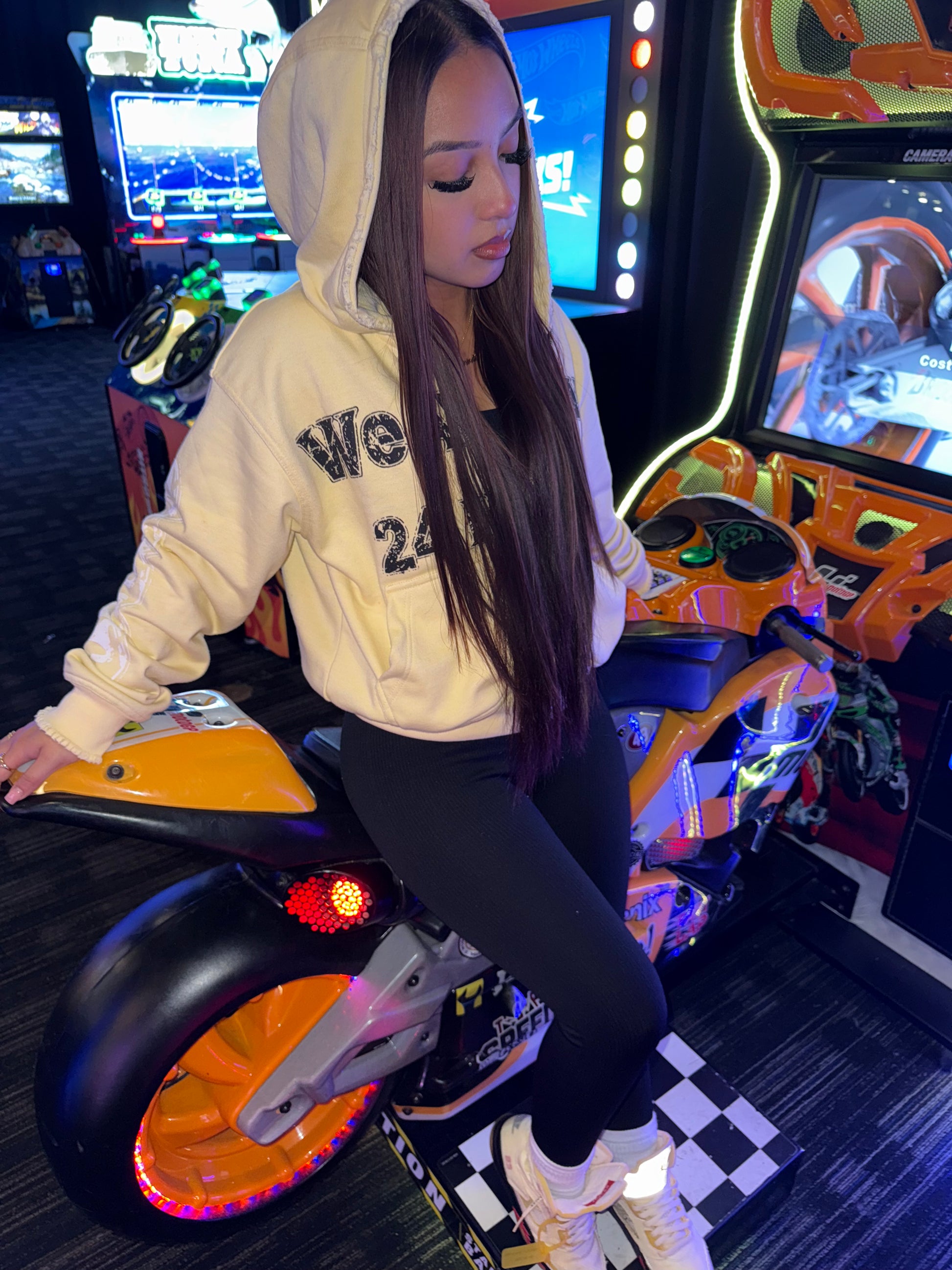 Slight distress on sleeve cuffs and hoodie